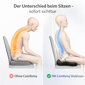 Mit unseren Comfomy Sitzkissen bekommt das Becken mehr Unterstützung, was zu einer natürlicheren, stabileren Sitzposition führt.